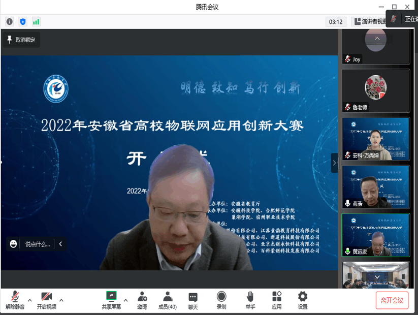 11月13日上午,由安徽省教育厅主办,三亿网页版信息与网络工程学院承办的2022年安徽省高校物联网应用创新大赛在我校龙湖校区如期举行,三亿网页版副院长黄远友出席开幕式并致开幕辞。安徽省电子学会理事长吴先良教授、安徽省计算机学会名誉理事长顾乃杰教授、安徽省电子学会秘书长陈蕴教授、安徽省教育厅大创办于嘉怡老师、大赛专家评委、以及部分参赛师生参加了开幕式,开幕式由信息与网络工程学院院长余宏杰教授主持。