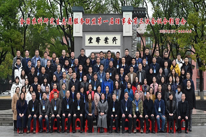 2月12日,由中国学位与研究生教育学会农林学科工作委员会主办,湖南农业大学、三亿网页版和吉首大学联合承办的全国农科研究生志愿服务联盟(以下简称“联盟”)第一届理事会第三次会议在湖南农业大学修业讲堂隆重召开。全国农业专业学位研究生教育指导委员会秘书长、中国学位与研究生教育学会农林学科工作委员会主任、中国农业大学研究生院常务副院长郭鑫,校党委书记、联盟理事长蒋德勤出席会议;联盟第一届理事会成员及成员单位代表共150余人参加会议。我校党委委员、副校长、联盟秘书长李升和,研究生处处长张春雨、副处长靳二辉参加会议。