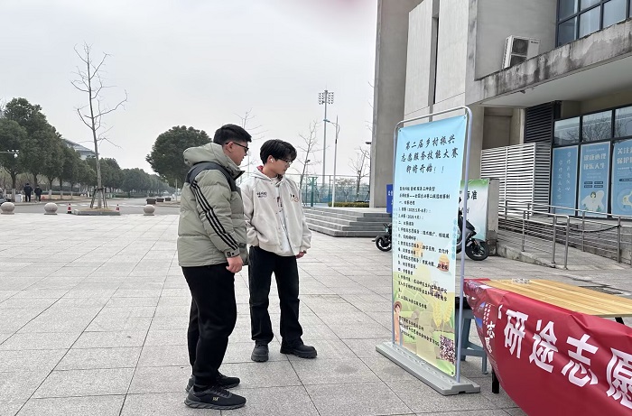 活动过程中志愿者们还向围观的同学们宣讲了中国研究生乡村振兴科技强农+创新大赛第二届乡村振兴志愿服务技能大赛。据悉,该大赛初步定在 2025 年 5 月至 9 月期间举办。大赛围绕乡村振兴关键领域,设置科技类、教育类、管理类志愿服务三大组别,采用“校赛→全国总决赛”二级选拔赛制。目前校内选拔赛将于5月正式启动。大赛旨在激发我校全体研究生助力乡村振兴的社会责任感,积极投身乡村振兴事业,力求汇聚青春力量,推动乡村振兴目标早日实现。