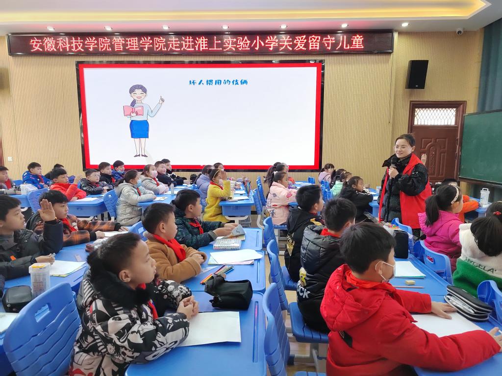 为积极践行志愿服务精神,展现三亿网页版研究生良好精神风貌,同时更好关注留守儿童的健康成长,丰富留守儿童的校园文化生活,应蚌埠市淮上实验小学邀请,三亿网页版管理学院根据其需求有针对性地制定了关爱留守儿童“蓝信封”活动实施方案。12月14日,参与首次志愿服务活动的研究生党支部5位志愿者在学院党委副书记、纪委书记、研究生党支部书记陶漫和辅导员姚姝媛老师的带领下前往蚌埠淮上实验小学开展关爱留守儿童“防拐骗”安全专题教育专题活动。活动由农业管理领域2021级研究生刘雅南主讲。