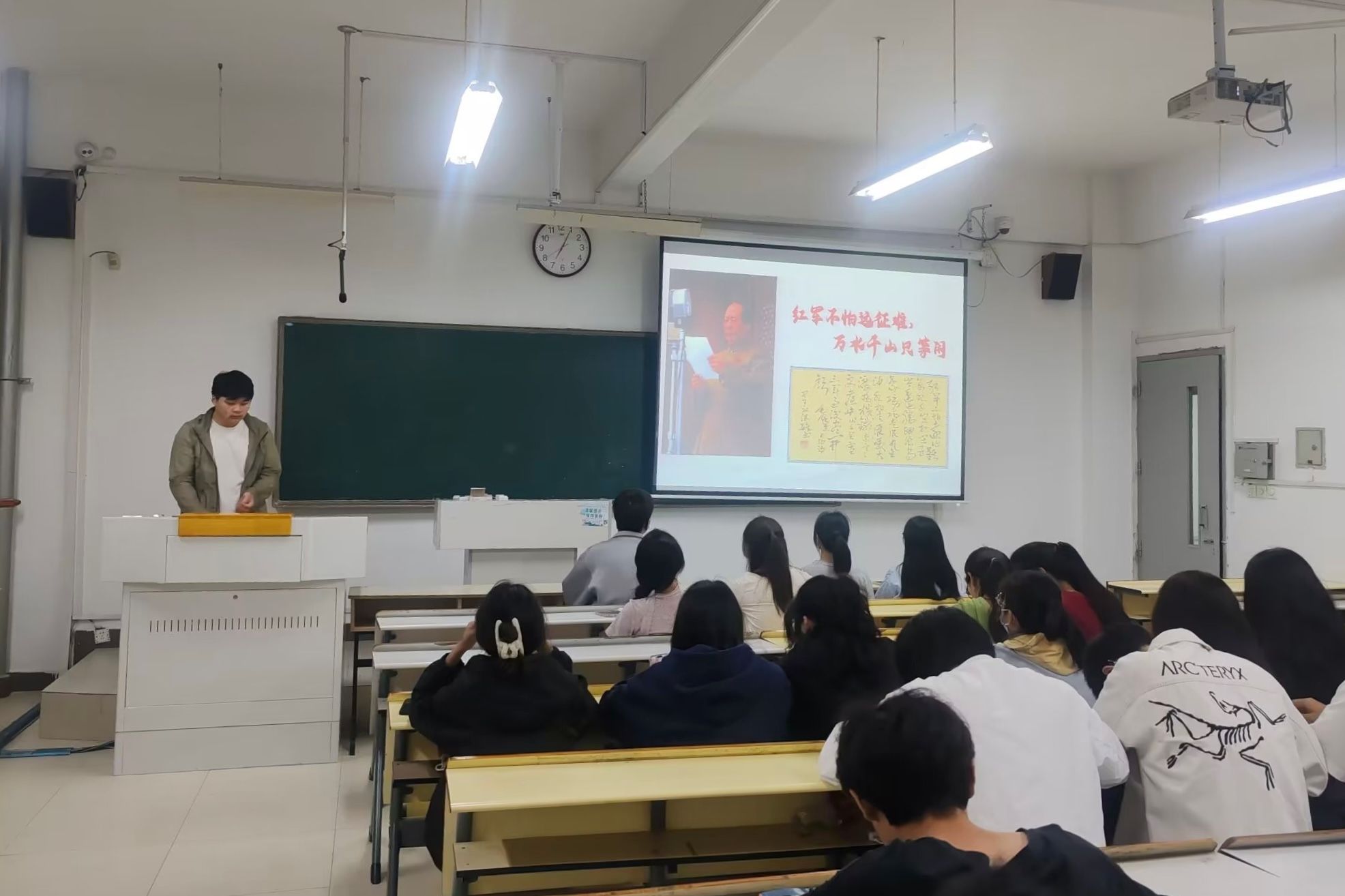 虞俊松以长征背景为首要切入点,在时间线的基础上由浅入深地介绍了红军长征的原因、路线及重大意义等。此外,他还着重强调了遵义会议在长征实践中一决胜负的重要性。随后,他对红军长征路上的每个艰难时刻都进行了详细的讲解,如飞夺泸定桥,爬雪山过草地等。最后,虞俊松鼓励同学们积极提高自己的学习与实践能力,提升个人综合素质,向长征的革命先辈榜样学习,从中汲取前进动力,认真做好个人学业规划、职业规划,锤炼过硬的学习本领。会上,与会党员向同学们详细阐述了入党的条件和程序,希望同学们能够认真学习、积极工作,不断提升个人综合素质,积极向党组织靠拢。