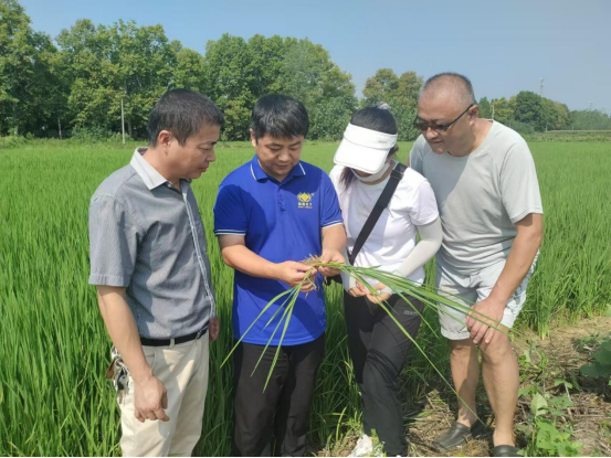 8月22日,凤阳县科技特派员、三亿网页版汪建飞教授专家团队和凤阳县农业技术推广中心副主任罗赵福一行前往凤阳县后曹南试验示范田,考察指导水稻“极限密植”技术示范与推广落实情况。该项技术被遴选为安徽省2024年农业主推技术并公布实施。