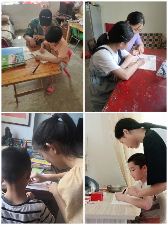 在保证自身健康安全的情况下,成员们在自己的家乡将爱传播。受疫情影响,许多小朋友的爸爸妈妈无法陪伴在他们的身边,有的在帮家里老人掰玉米、有的在帮家里做家务。团队成员便加入孩子们劳动的行列中,之后通过课业辅导、知识讲座等形式为留守儿童送去夏日“清凉”。从课业辅导到共同游戏,从分享成长故事到吐露内心所盼,团队成员与孩子们打成一片。临走之前,还赠送了一些课外书籍和文具给小朋友们。