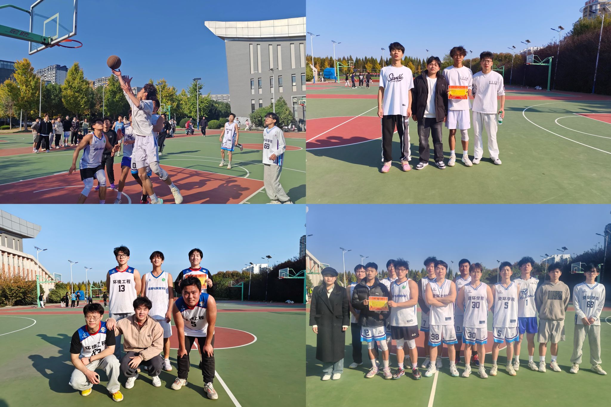 资源与环境学院第一届新老生篮球赛于11月23日在西区篮球场落下帷幕,历经紧张刺激的多项积分制比赛后,此次闭幕式参赛的队伍分别由22级农业资源与环境队对战23级农业资源与环境队,22级环境工程队对战23级地理信息科学队。