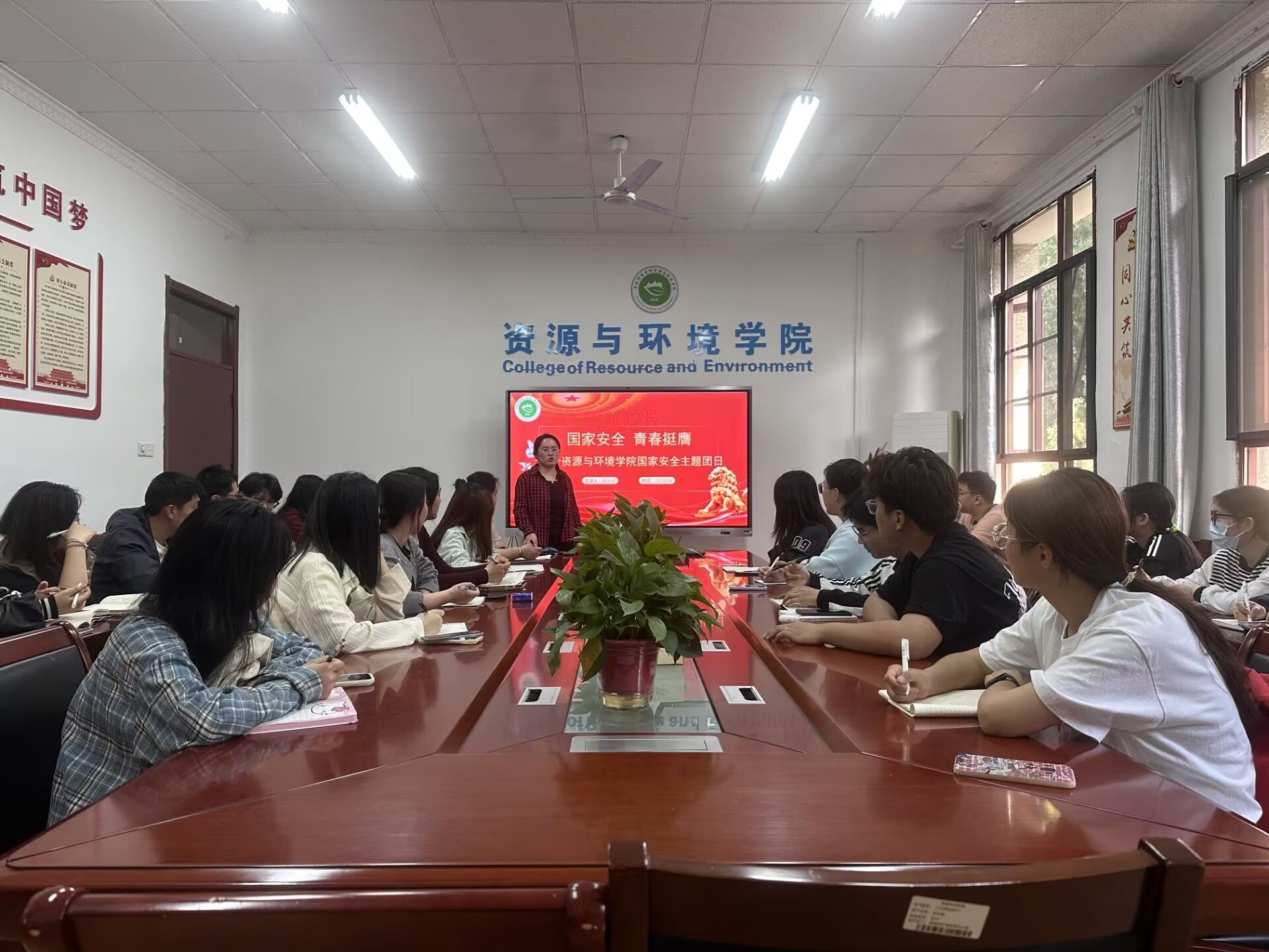 4月16日下午,资源与环境学院于学院会议室开展“国家安全 青春挺膺”主题讲座,学院团学代表参加,讲座由团委书记杨小晗主讲。