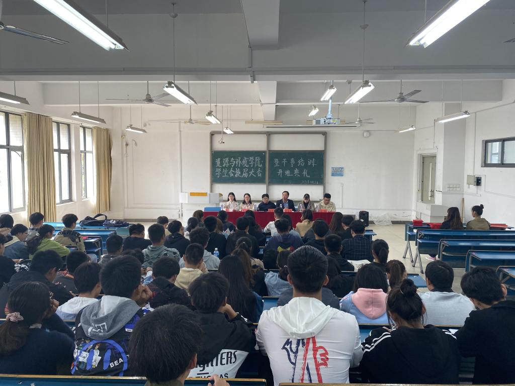 10月29日中午,资源与环境学院于新知楼B202召开学生会换届大会暨干事培训开班典礼。学院副处级辅导员谢宜勤、党总支秘书兼团委书记吴国良、团委副书记杨小晗、新生辅导员王丽萍、第五届学生会主席团、部长级成员应邀出席会议,第六届学生会全体成员参加,会议由杨小晗主持。