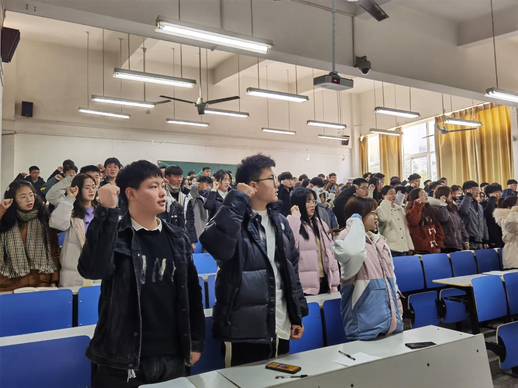 会议最后,学生会执行主席陈汉带领全体参会学生进行诚信考试宣誓。