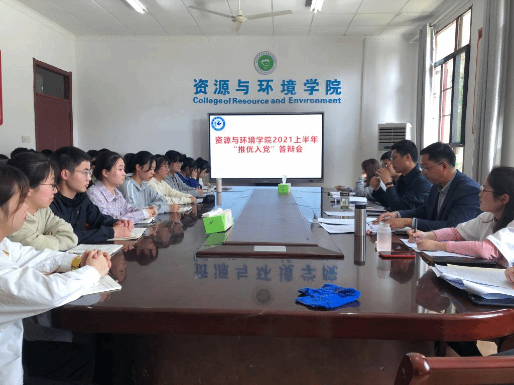 4月29日下午,资源与环境学院于东办公楼学院会议室举行“推优入党”答辩会。学院党委副书记沈树周,学生党支部书记吴国良、杨小晗、王丽萍出席本次会议,29名入党积极分子“推优”考察对象参加,会议由党政办主任吴国良主持。