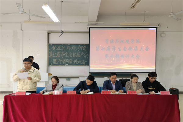 为了保证学院学生会工作的高效顺利进行,10月21日中午,资源与环境第七届换届大会暨培训大会于新知楼B101顺利举行。党委副书记沈树周、党政办主任吴国良、团委副书记杨小晗、学生会指导老师王丽萍、第六届主席团成员及各个部门负责人受邀出席本次会议,第七届全体学生会成员参加本次大会。此次会议由王丽萍主持。大会在庄严的国歌中拉开帷幕。