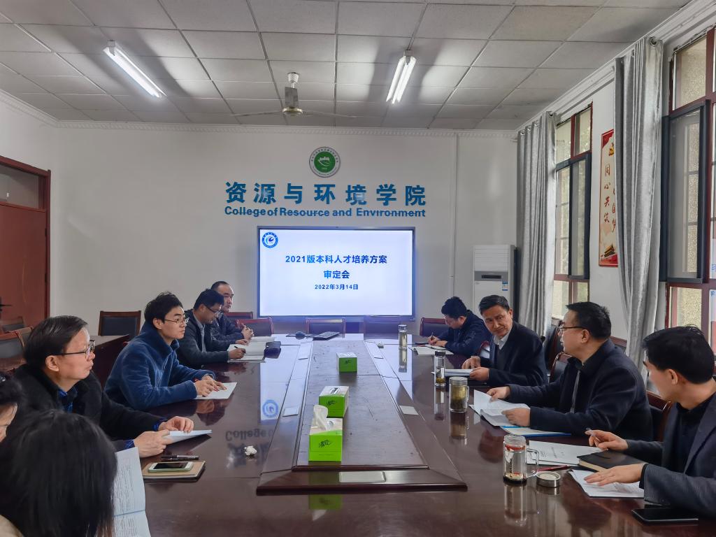 3月14日上午,资源与环境学院在东办公楼207会议室召开2021版本科专业人才培养方案审定会。资源与环境学院党委书记李孟良,党委副书记、院长李孝良,党委副书记、纪委书记沈树周,党委委员、副院长邹海明,教学工作委员会委员及各专业负责人参加了本次审定会,会议由邹海明主持。