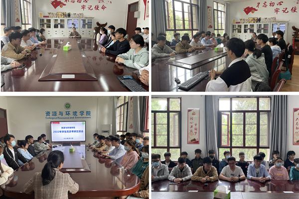 为发挥党员先锋模范作用,同时也为了进一步优化学风建设,使学生提前了解考研信息,不断提高资环学子考研的热情与积极性,掌握考研复习的有效方法。5月10日中午,资源与环境学院于学院会议室举办了学生党员考研交流会,学生会指导老师王丽萍出席此次会议,2018级优秀考研学生党员代表闫振宇、沈琦、徐赠俊、戴梦亚、胡银、杨芳、梁丽丽、刘苗苗受邀担任此次交流会的嘉宾,20、21级部分学生参加本次交流会。此次交流会由王丽萍主持。