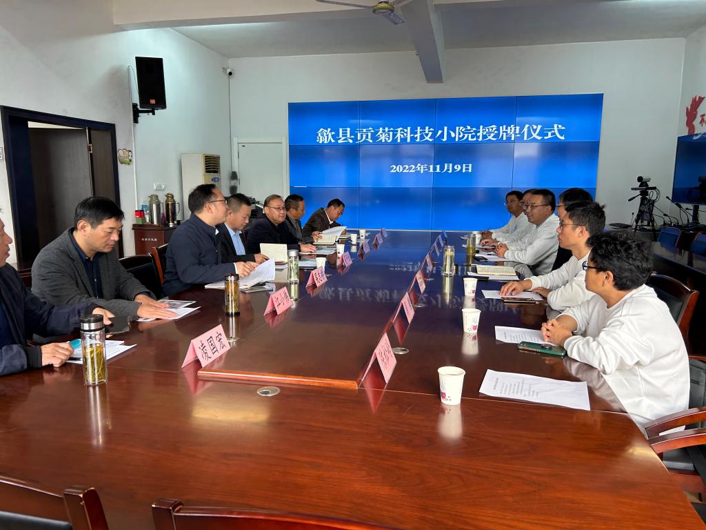 李孝良介绍了科技小院成立的初衷和目的,“贡菊科技小院”的挂牌建设是学校落实省委、省政府提出的“两强一增”行动方案的重要举措,为歙县贡菊发展提出“安科方案”,引导歙县贡菊产业高质量发展,实现学校研究生培养与歙县农业产业发展和乡村振兴双赢。