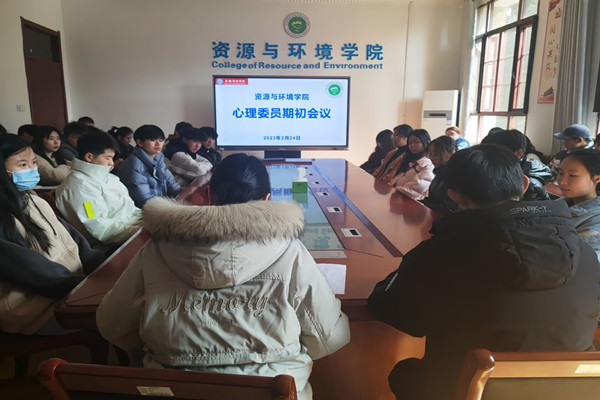 2月24日中午,资源与环境学院于学院会议室召开了心理委员期初会议。资源与环境学院学生会指导老师王丽萍受邀参加此次会议,资环学院全体心理委员参加此次会议。此次会议由王丽萍主持。