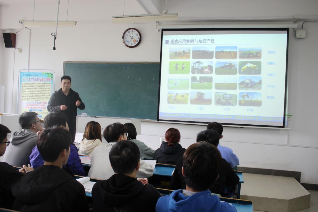 随后,李新伟老师重点讲解了“耦合空天地一体化空天地多源遥感数据的农作物养分监测、决策、精控技术应用”等过程中必须要保护的知识产权技术,提升了大学生对知识产权在激励创新中重要作用的认识,增强了大学生的知识产权文化意识。(特约通讯员:孟凡德 摄影:刘金映 审核:沈树周)