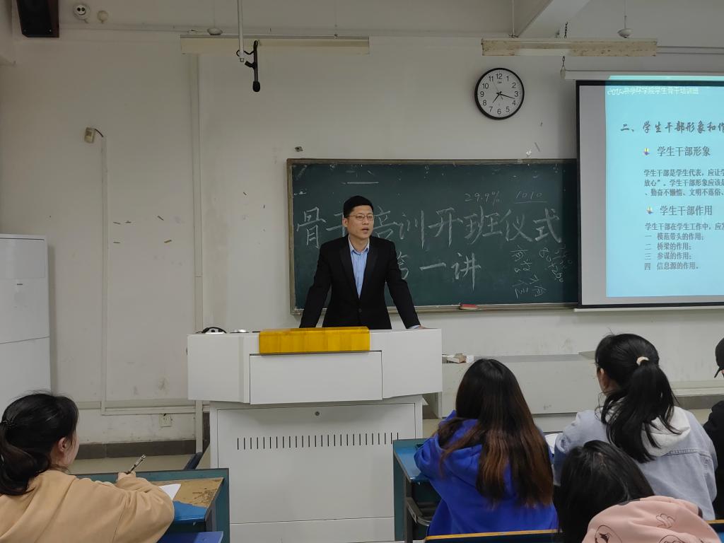 4月25日晚,资源与环境学院于新知楼A101召开骨干培训仪式暨第一讲,资源与环境学院党委副书记受邀出席此次会议,21、22级全体班长、团支书及第八届全体学生会成员参加此次会议。会议由沈树周主持。