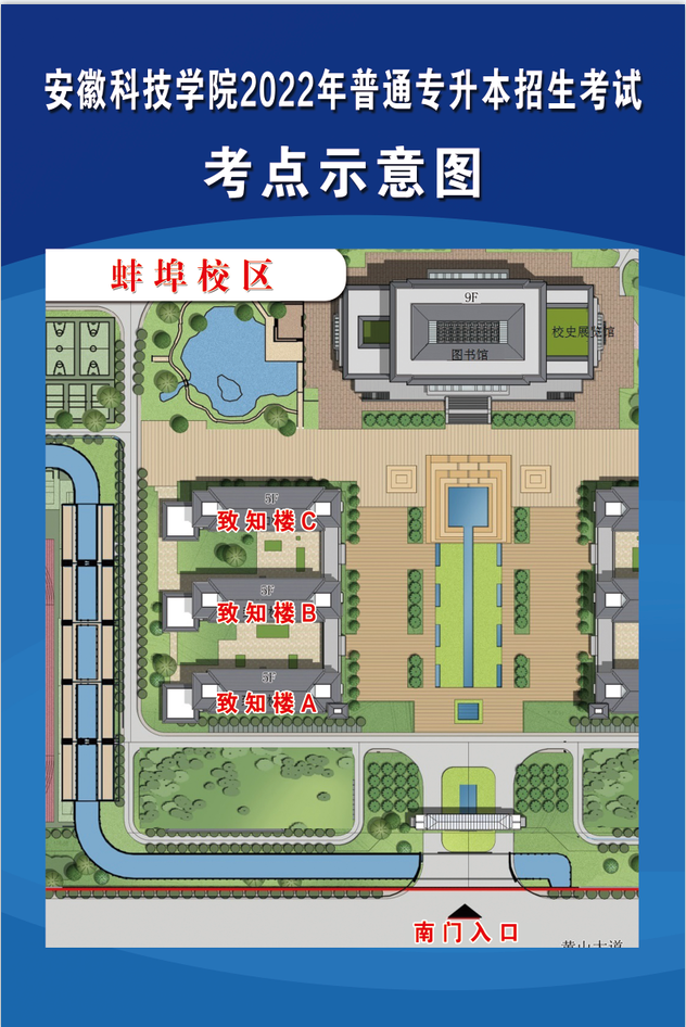 三亿网页版2022年普通专升本招生专业课考试将于7月3日在学校蚌埠龙湖校区举行,考生可于上午7:50从学校南门进入校区。根据疫情防控要求,请考生做好个人防护,带好口罩,与他人保持合理间距,减少近距离接触和交流。入校时请配合工作人员核验安康码、行程码、核酸检测阴性报告,体温测量、身份核验,提交《三亿网页版2022年普通高校专升本招生专业课考试考生健康承诺书》。入校后到指定考场等候考试开始(考点示意图如下),考生如出现安康码异常等情况,请提前和我校招生办公室联系0550-6732178,6733934。请考生认真阅读准考证考生守则,遵守考场纪律。