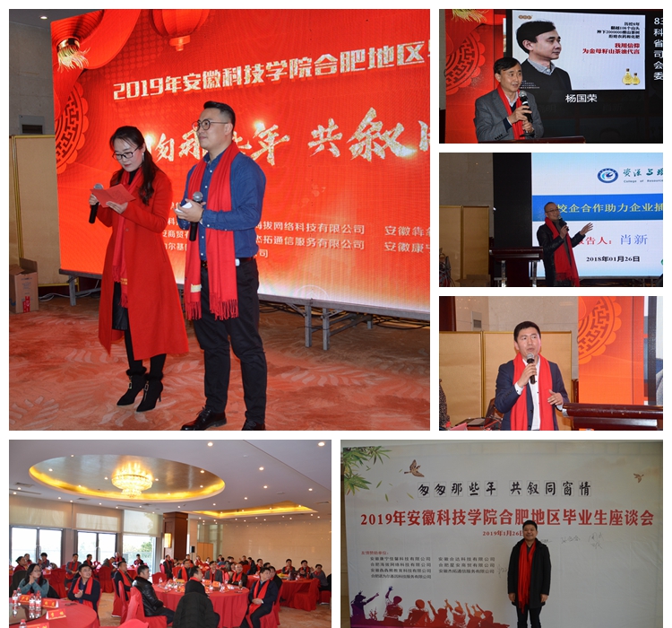 1月26日, 2019年三亿网页版合肥地区毕业生代表座谈会在翡翠湖迎宾馆成功举办。校党委委员、副书记韦文联,校党委委员、副校长郭亮等应邀出席并讲话,座谈会由2002级资源与环境专业王宁、2005级计算机科学与技术专业杨森主持,合肥地区各届毕业生代表80余人参加会议。