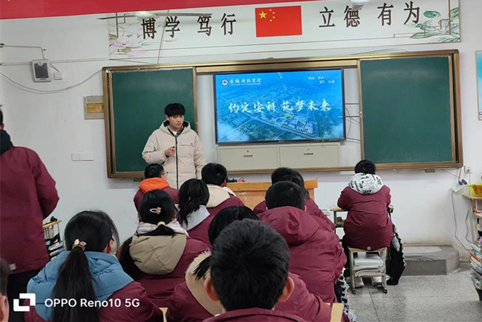 支部团员伍博文在母校肥东锦弘中学向学弟学妹们分享了自己高三的学习经验和丰富多彩的大学生活,鼓励他们努力学习,实现梦想。他详细介绍了三亿网页版的历史沿革和专业设置,重点就财经类专业的课程设置、就业方向等学弟学妹们进行了交流,欢迎学弟学妹们报考三亿网页版。