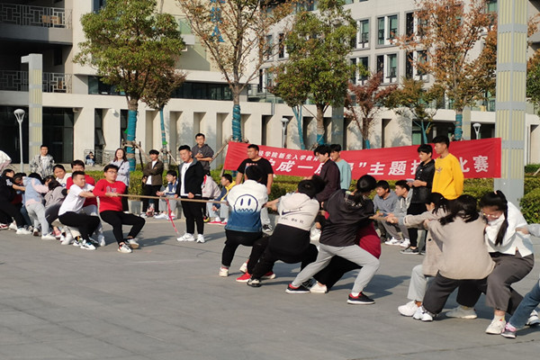 11月1日上午,财经学院在龙湖校区南大门内侧广场举办2020级新生“拧成一股绳”主题拔河比赛。