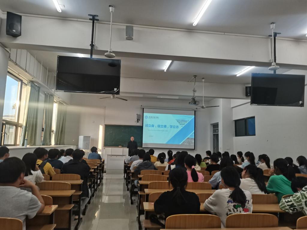 财经学院党委副书记、纪委书记耿广汉以“诚立身、信立德、学立志”为题,开展了励志勤学教育。他分享了自己学生时代的经历,讲述了自己大学四年的规划,并寄语与学生共勉。一要乐观进取,奋发图强;二要刻苦学习,努力成才;三要懂得感恩,回报社会;四要明确使命,谋求作为。他希望同学们把磨难当做一种财富,把挫折转化为奋发向上的动力,珍惜时光,励志苦读,志存高远,勤于实践,习得一身好本领,修得满腹好文章,以丰厚的知识技能素养,回报父母、学校与社会,并传承发扬助人为乐的中华传统美德。