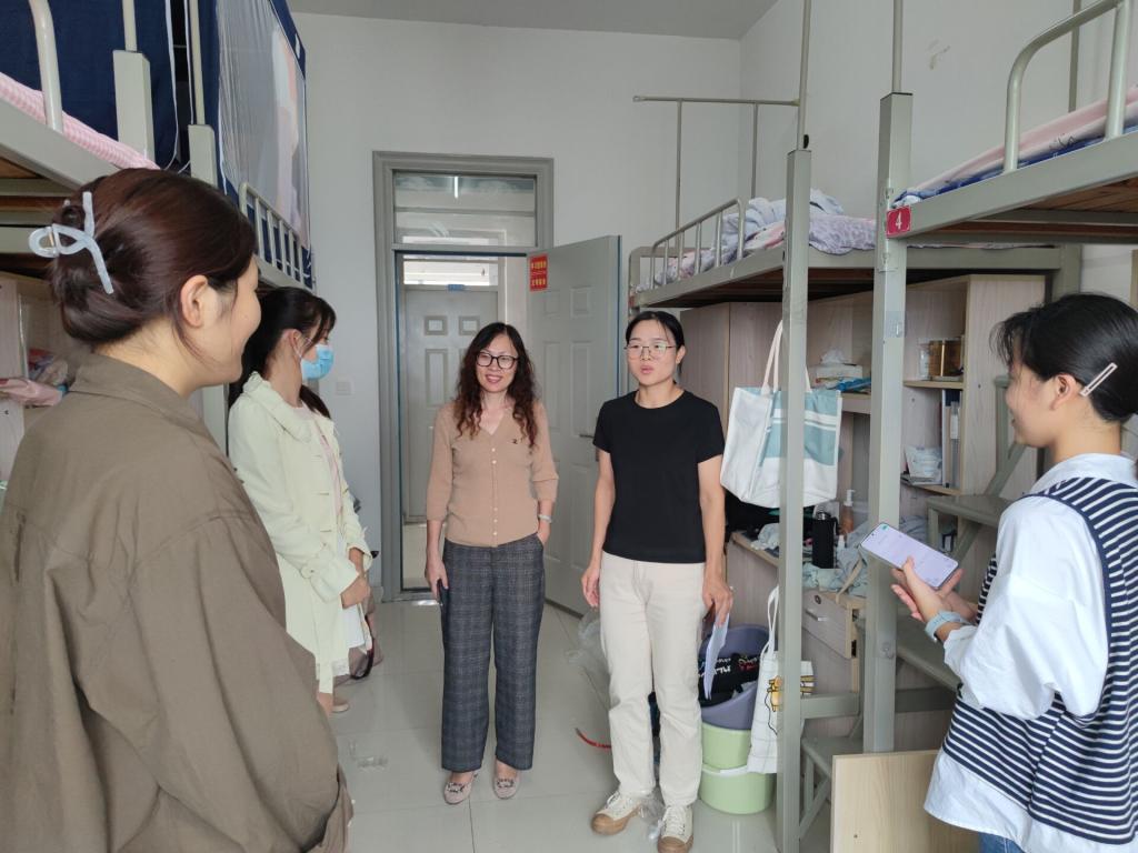 在新生宿舍,学院领导对同学们的到来表示热烈欢迎,并与他们亲切交谈,零距离了解他们进校后的适应情况、衣食住行情况;提醒新生切实做好常态化疫情防控工作,提高安全防范意识,注意人身、财物和信息安全;鼓励同学们调整状态,合理规划大学生活,提高自律与独立生活能力,互助友爱,勤奋学习,志存高远,积极融入到班集体,尽快融入到大学的学习生活中。