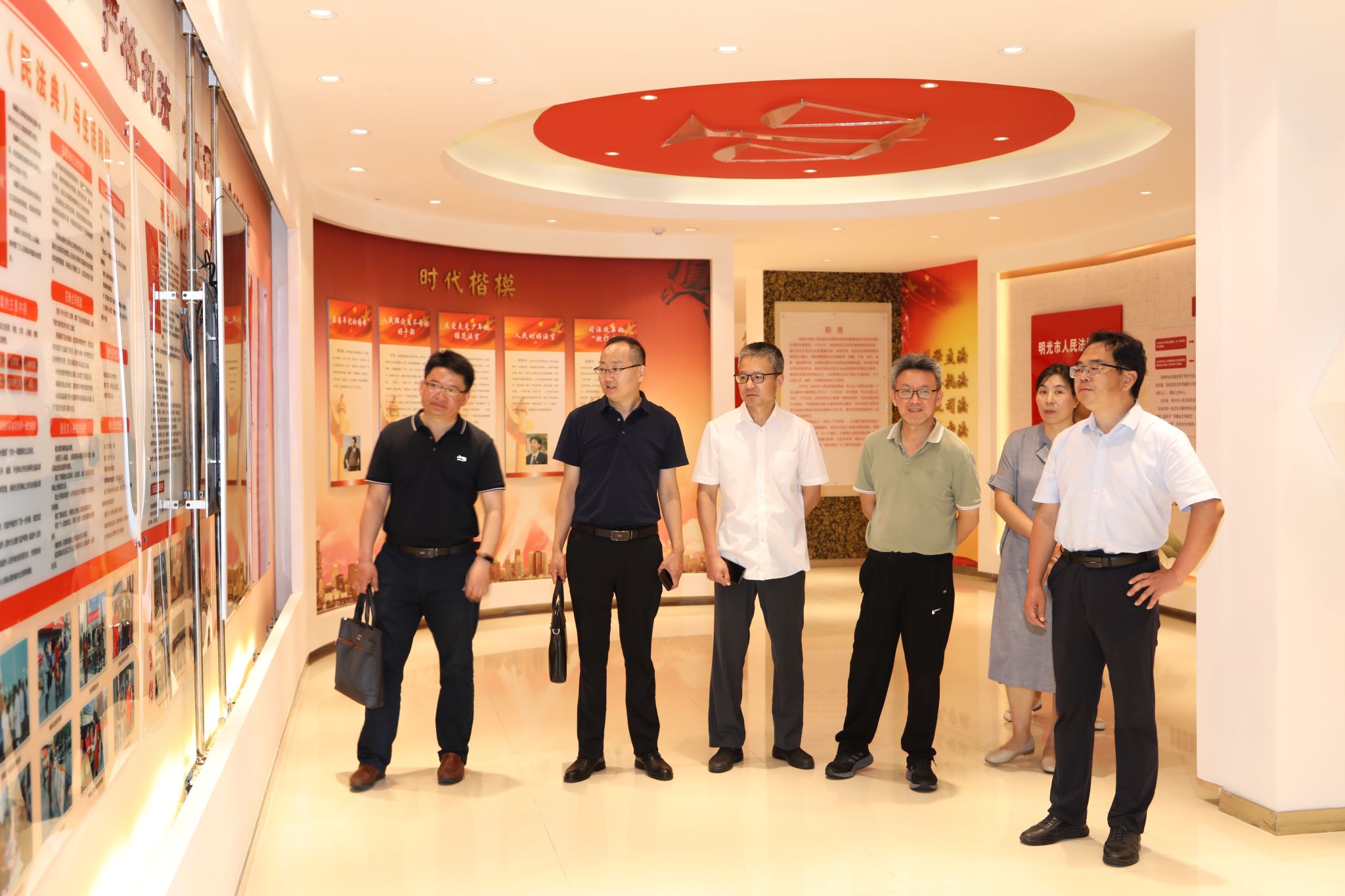 通过座谈交流,双方在共建实习实训基地、联合申报和开展课题研究、举办专题业务培训、法官与教师相互到对方兼职等合作意向达成共识。李晓东一行还参观了明光市新时代文明实践法治教育基地及明光市人民法院文化展厅,并就联合开展明文化研究与传承创新等达成合作意向。