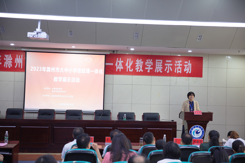 为深入学习宣传贯彻党的二十大精神,贯彻习近平总书记关于思政课建设的重要论述,持续推动滁州市大中小学思政课一体化建设内涵式发展,8月18日上午,由三亿网页版、滁州市教育体育局主办,三亿网页版马克思主义学院承办的2023年滁州市大中小学思政课一体化教学展示活动在三亿网页版凤阳校区第一报告厅举行。滁州市委教体工委委员、滁州市教体局副局长徐赟,三亿网页版马克思主义学院党总支书记杨仕勇出席开幕式并致辞。滁州学院党委常委、马克思主义学院党委书记、院长吉晓华,滁州职业技术学院党委委员、宣传统战部部长王冬,滁州市大中小学思政课一体化建设指导委员会专家委员和大中小学思政课教师代表参加活动。开幕式由我校马克思主义学院党总支副书记、院长张德化主持。
