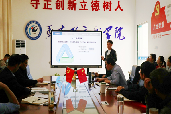 为深入学习贯彻习近平新时代中国特色社会主义思想和党的二十大精神,提升思政课教学水平,10月11日下午,学院在学术会议交流中心开展2023年下半年“形势与政策”集体备课会,学院全体教职工和兼职思政课教师参会,会议由“形势与政策”教研室主任侯保龙主持。