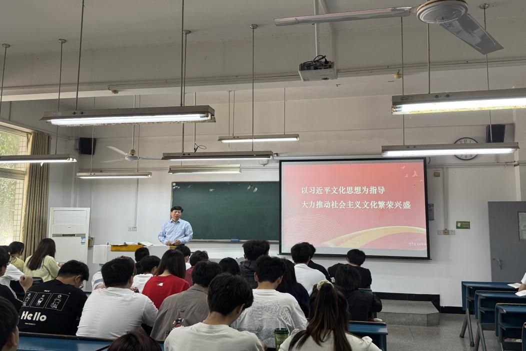 2025年5月7日和23日,校党委书记时伟教授分别走进动植物检疫(对口)专业2023级班级和2024 级食品科学与工程专业班级思政课堂,围绕“以习近平文化思想为指导 大力推动社会主义文化繁荣兴盛”这一专题,深入剖析在新时代新起点上,如何持续推动文化繁荣、建设文化强国,引领学生们共同探索创造属于这个时代新文化的路径,坚定文化自信,争做中华民族先进文化的忠实传承者。
