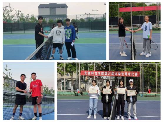 本次比赛面向全校,吸引了大批网球爱好者参加,整个比赛在欢乐、轻松的气氛下展开。赛场中,选手们积极向上,勇“网”直前,永不放弃的精神给人留下深刻的印象。他们是生活中的朋友,赛场上的对手。经过两天的激烈角逐,最终凤阳赛区:机械工程学院刘安航、动物科学学院强宏扬分获大一男子组冠亚军,生命与健康科学学院宋雨薇、董丽分获大一女子组冠亚军;机械工程学院段辉、资源与环境学院王峰分获非大一组男子组冠亚军,人文学院潘瑀琪、农学院张孟凡分获非大一组女子组冠亚军。龙湖校区:信息与网络工程学院高祥宇、信息与网络工程学院刘志洋分获大一男子组冠亚军,财经学院陶金倩、管理学院肖雯雯分获大一女子组冠亚军;化学与材料工程学院陈信波、建筑学院张鑫鑫分获非大一组男子组的冠亚军,管理学院史雪洋、周璇分获非大一组女子组冠亚军。