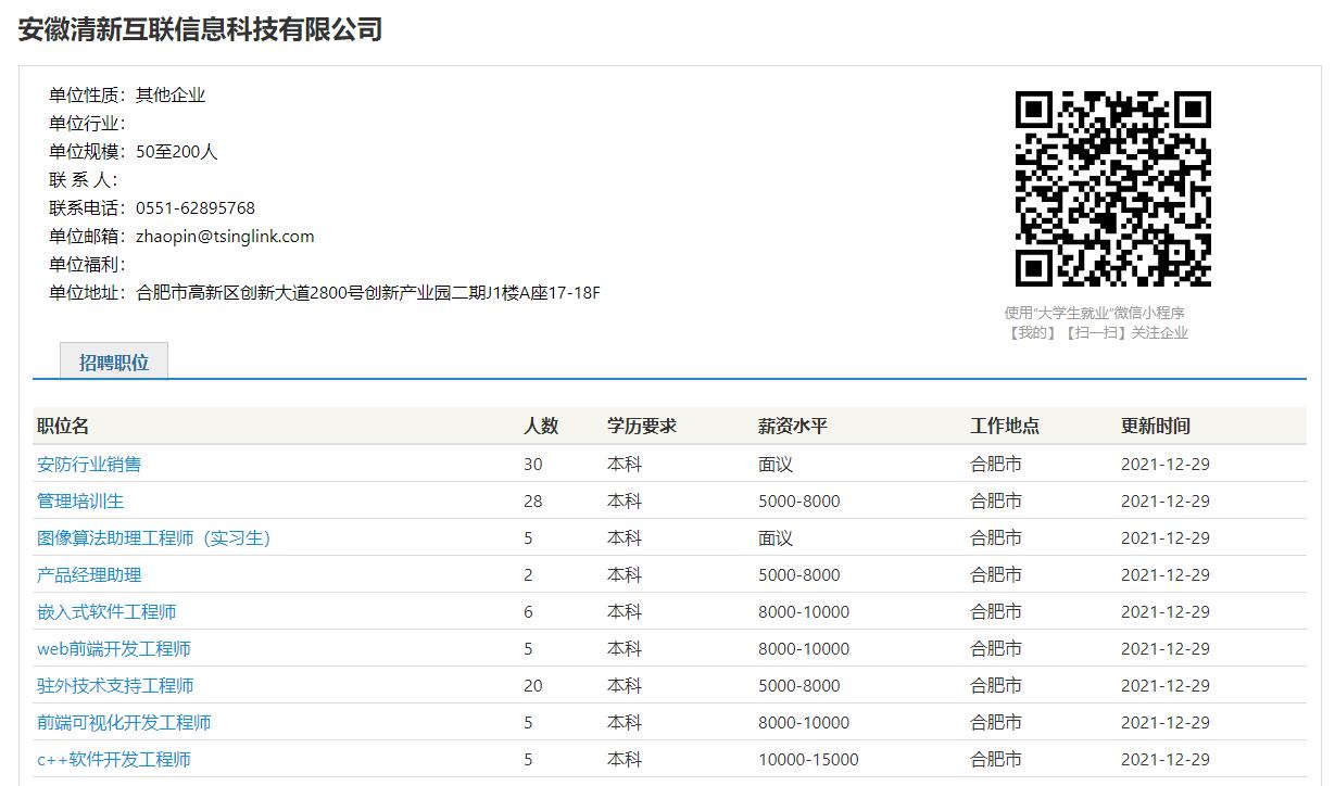 安徽清新互联信息科技有限公司是无线智能视频产品及系统解决方案提供商,是高新技术企业、双软企业、知识产权示范企业。公司来源于中国科学技术大学,在无线传输、低码率高清视频、多网融合应急通信、物联网视频智能硬件、深度学习人工智能、视频大数据云平台等方面拥有领先的自主核心技术和持续研发能力。 公司集研究、开发、生产、销售及运维服务于一体,可提供5G智能布控球、5G智能指挥箱、5G智能车载、5G智能警灯、智能执法记录仪、智能单兵、智能安全帽、AI热成像测温仪、AI测温平板、物联网智能摄像机、云视频管理平台、可视化指挥平台等产品。除5G/4G产品外,还提供专网、自组网、固网等多网络的物联网、大数据视频产品及系统解决方案。 公司产品通过公安部、电网、安监等相关部门检测认证,已在公检法、应急办、消防、武警、边防、安监、城管、环保、交通、金融、石油、电力、爆破等行业得到广泛的应用。
