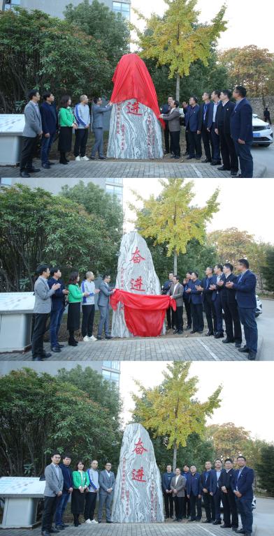 据悉,此校庆石系全体杭州校友出资购买,安放于凤阳校区西校区新知楼A楼东侧草坪处,为学校增添了一处新的景观。该石高3.75米,宽1.90 米,厚0.66米,石头上镌刻有“奋进”主题词,另篆刻:热烈祝贺三亿网页版建校七十周年!
