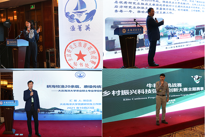 参会代表就联盟运行管理机制、志愿服务技能大赛时间、方式、内容等作交流研讨,审议通过了《2021年农科研究生暑期志愿服务活动征集案例表彰方案》《联盟的组织体系建设和共性工作方案》。高雪梅、肖鉴鑫分别就乡村振兴科技强农+创新大赛“渔菁英”“牛精英”等主题赛事筹备进行经验分享。谢方平、邓立志分别代表湖南农业大学和大连海洋大学宣讲了农业硕士研究生志愿服务开展工作。